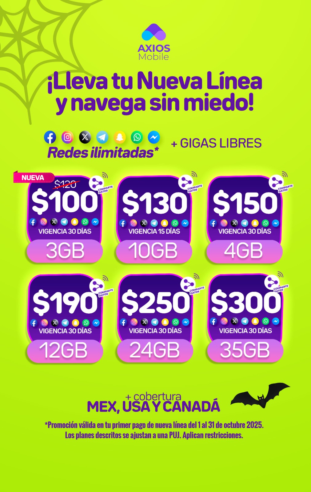 * Estos planes tarifarios y costos pueden cambiar según las promociones mensuales que Axios Mobile ofrece.